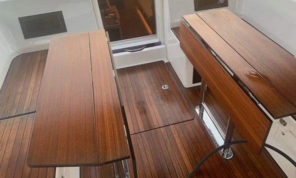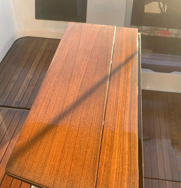 Top Deck is Non-slip Gelocoat White with Teak Wood Cockpit